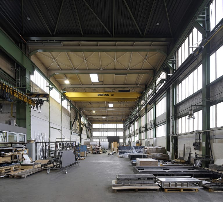 Die flexiblen Flächen können für Produktion, Lager und Logistik, Werkstätten oder Ateliers, Büros und Showrooms genutzt werden. Damit bietet das Areal perfekte Bedingungen für Weltmarktführer wie das Unternehmen Glasbau Hahn, aber auch für klassische Handwerksbetriebe oder kreative Gewerke.
